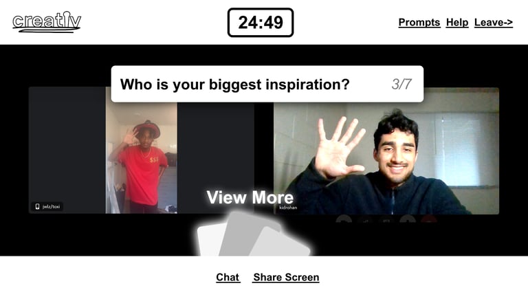 Through our video calling service, musicians can have 1:1 video calls where they can network with similar musicians through guided questions ranging from ice-breakers to career aspirations.